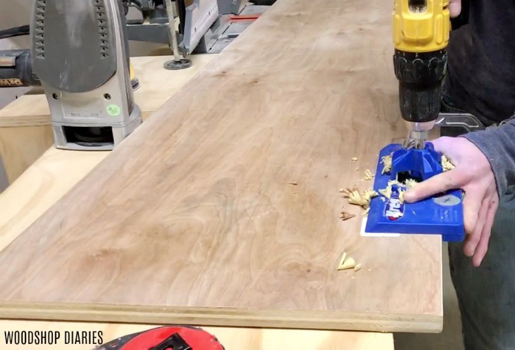 So, I cut down the plywood and assembled two carcasses using ¾″ pocket holes and 1 ¼″ pocket hole screws like shown here. I always recommend using PureBond plywood for building cabinets and furniture of any kind.