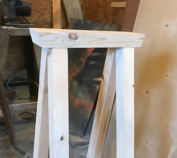 Anyway, cut each leg with 10 degree bevels parallel to each other, about 31″ long.