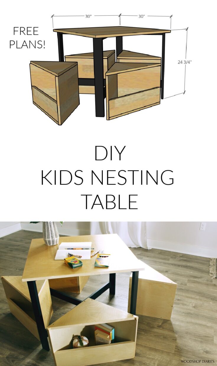 Build this adorable DIY Kid's Nesting Table with four storage cubby seats from a single sheet of plywood, a few boards, and just 4 tools!
